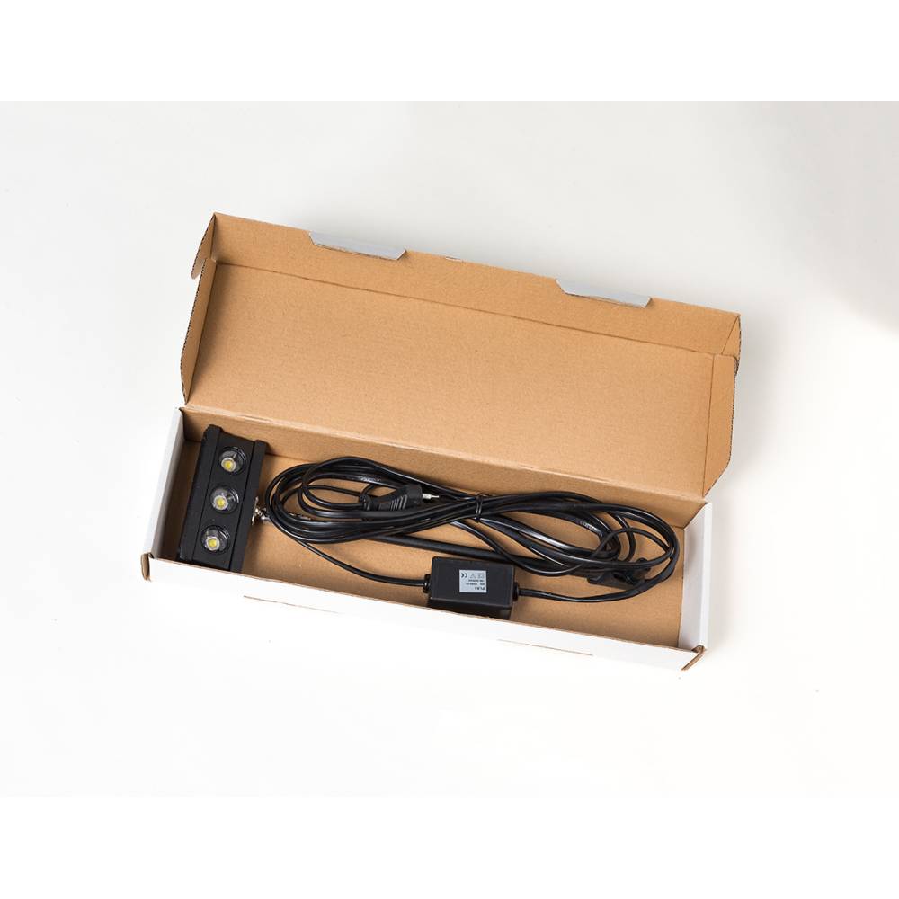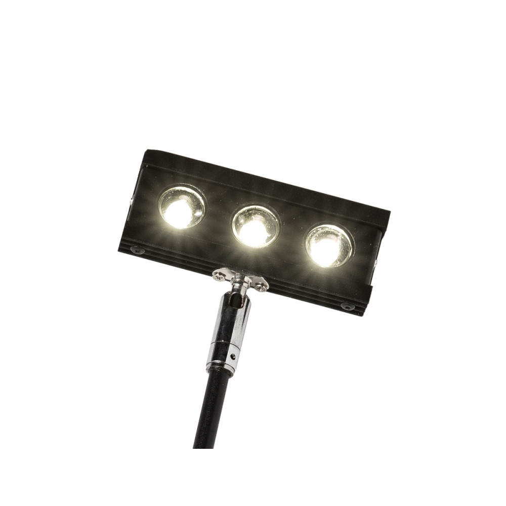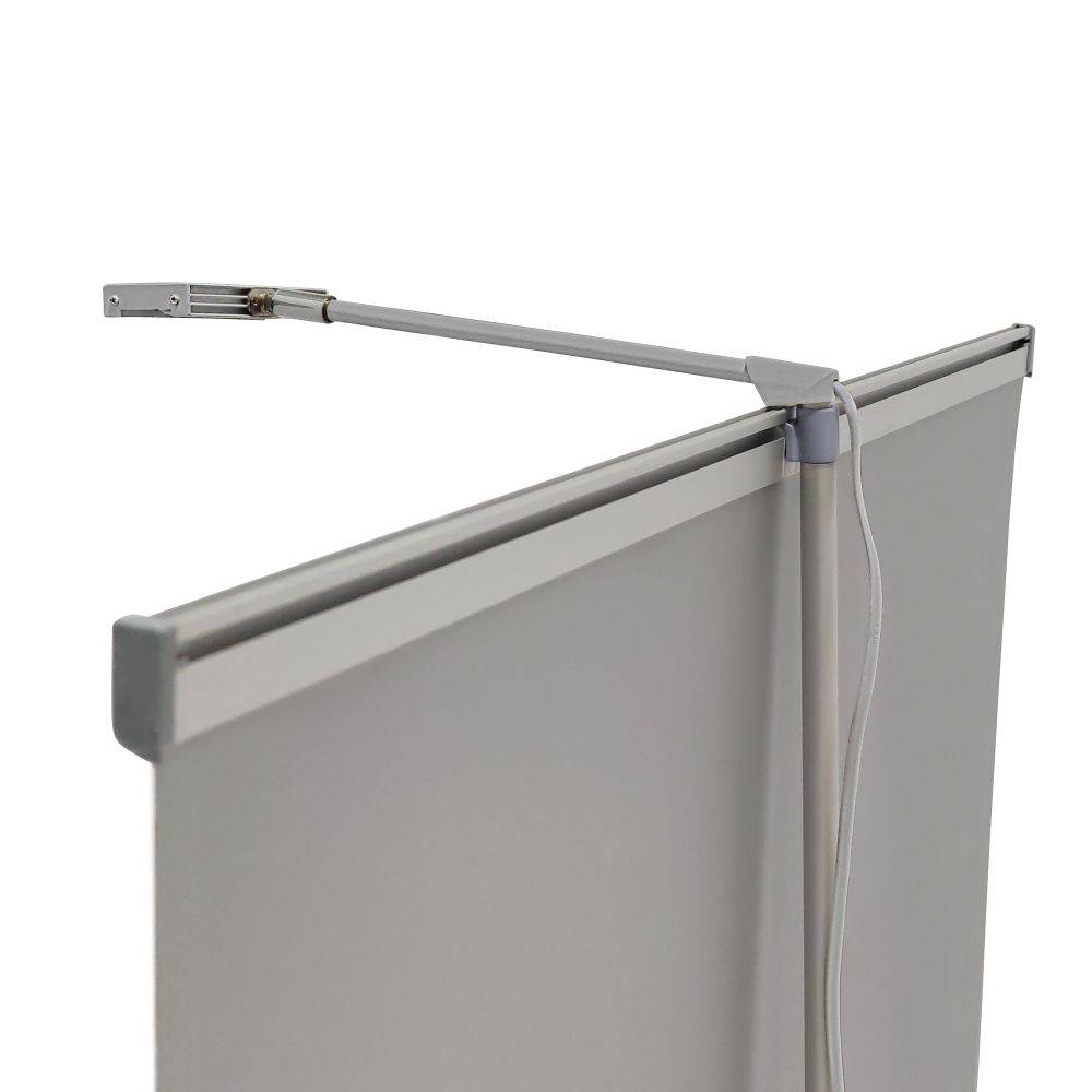 The 3 powerful LEDS sparkle 600 lumens of natural white light, literally putting your banner into the spotlight. Thanks to the cat-eye lens, the light transforms into an elongated bundle, which illuminates the print from top to bottom. Powder coating available in black, silver or white. Stylish and compact, with optimal results!