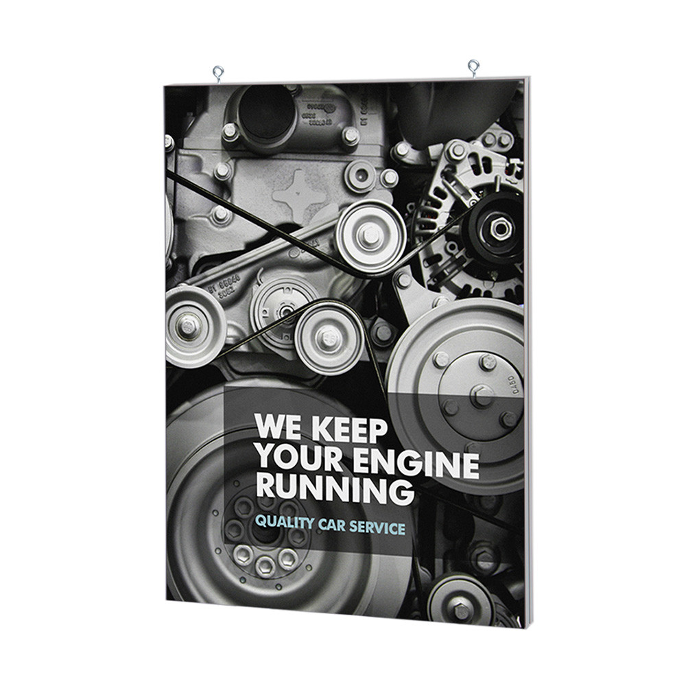 Choose your Textile Frame Suspended Model with our without LED. The 50 mm version is available without LED. Choose value for money with the Textile Frame 50 mm, an ideal solution for non-illuminated fabric print advertisement. Hanging hooks and a 2m steel cable for ceil hanging are included with the suspended version. Light up your advertisement with the 90 mm LED illuminated Textile Frame and shine bright in the sky. The 90 mm version is available with LED.