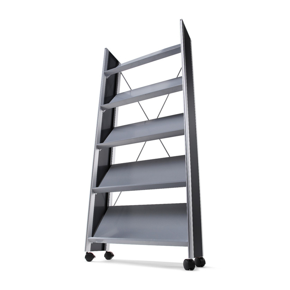 - High quality freestanding single sided mobile brochure rack with castors