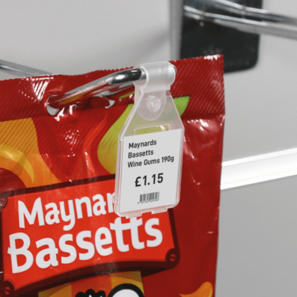 - Swing Tags for displaying prices on double prong hooks