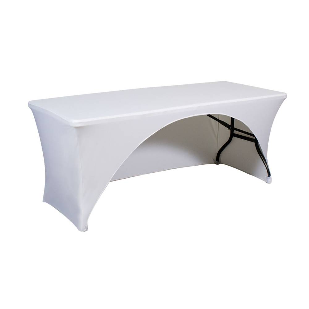 A tight and form-fitting table cover, an attractive option for promoting your brand. It stretches to fit tightly around tables, creating a crisp, refined appearance.