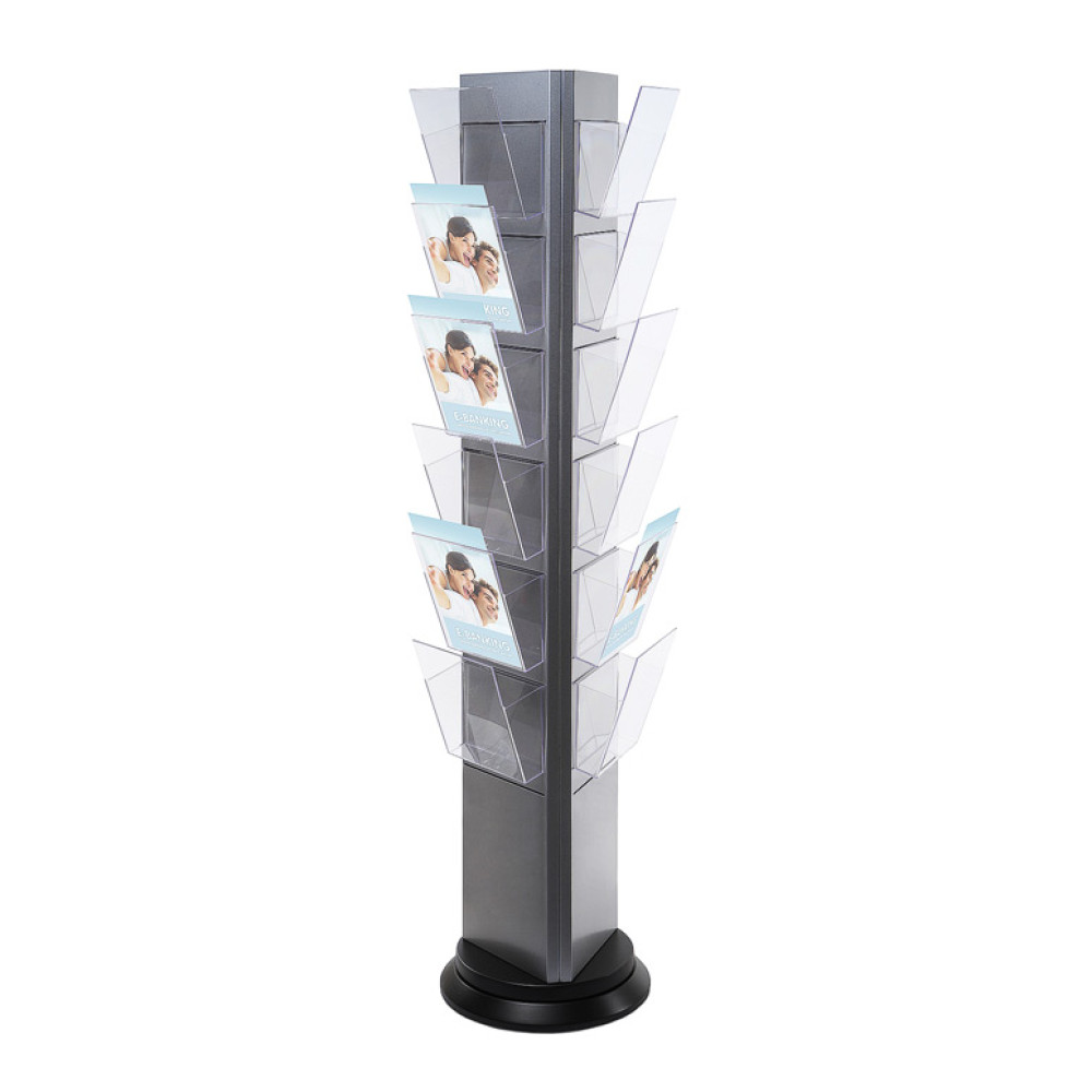 - TRYS revolving premium brochure stand with slot in A4 brochure holders